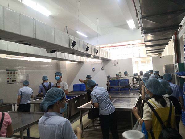 2021年7月30日上午,百色市右江區(qū)市場(chǎng)監(jiān)督管理局組織右江區(qū)部分高校和餐飲單位一行41人到我公司考察交流,在公司總經(jīng)理孔宇的陪同下分別參觀了凈菜加工中心、食品檢測(cè)室、秀苑餐廳等。