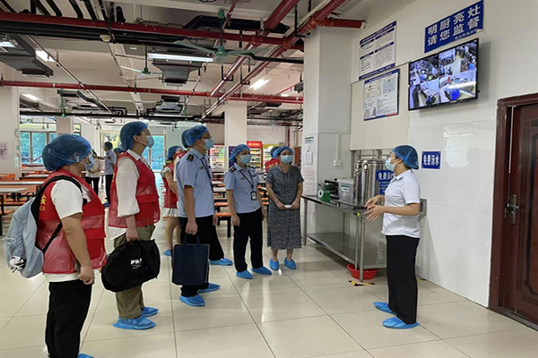 我校食堂實(shí)行“無(wú)水廚房”管理模式,堅(jiān)持“10M”目標(biāo)管理,實(shí)現(xiàn)食堂地面“無(wú)水化”。樸誠(chéng)公司有關(guān)負(fù)責(zé)人還介紹了食堂建立“互聯(lián)網(wǎng)+明廚亮灶”和食品安全管理情況,對(duì)市場(chǎng)監(jiān)管局檢查人員和“八桂食安”志愿者提出的問(wèn)題作了解答。